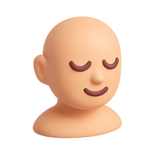 A stylized 3D character head featuring a calm expression, designed with smooth curves and a soft color palette. Ideal for digital art, animations, or wellness-related content.