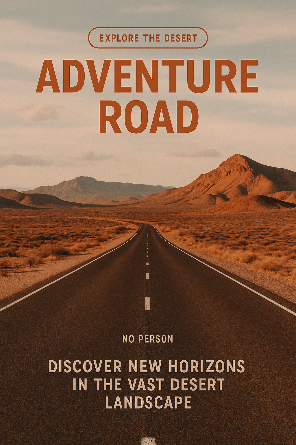 A visually striking travel poster featuring a scenic desert road, designed to evoke a sense of adventure and exploration. Ideal for promoting travel experiences.