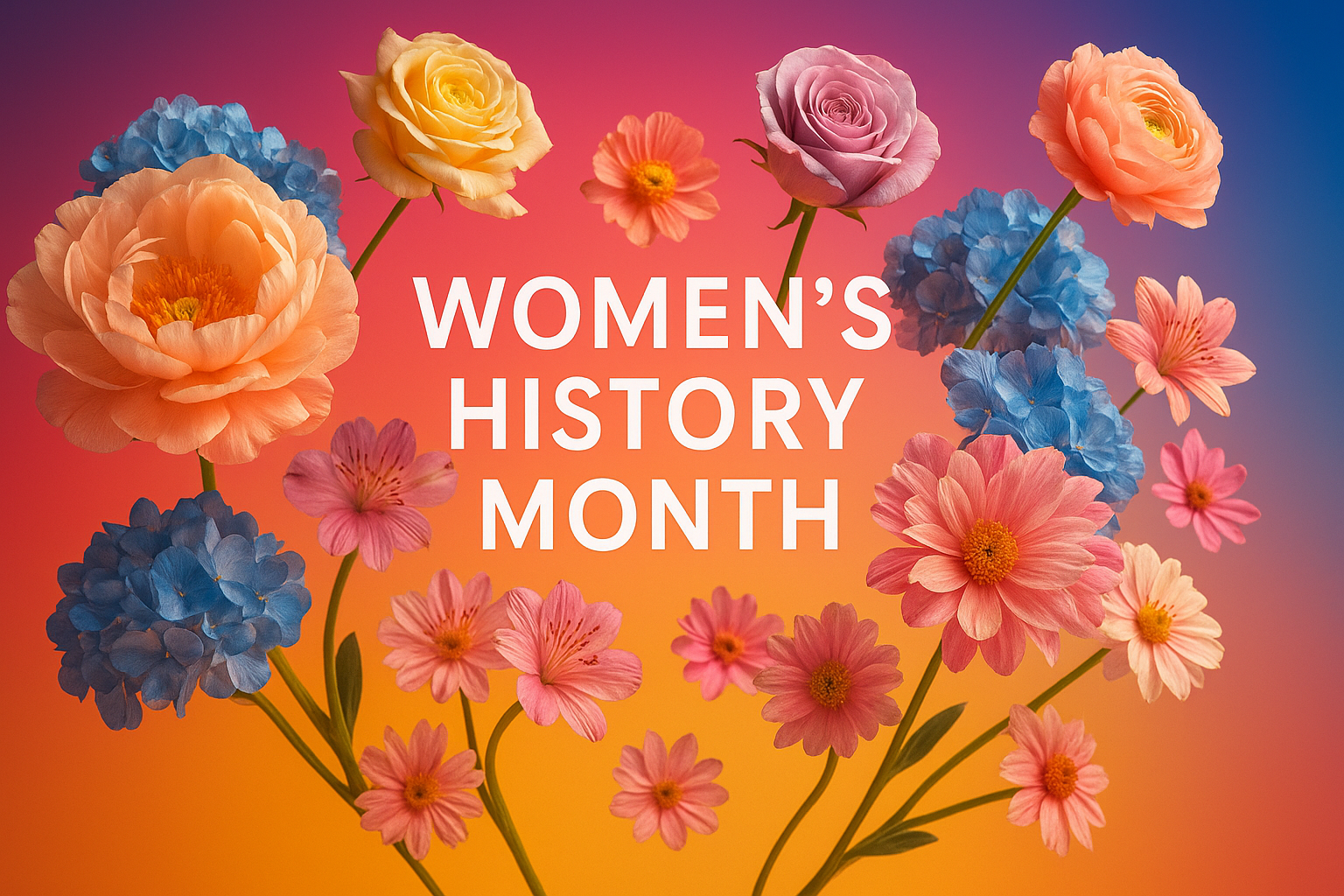 Vibrant Women's History Month Celebration with Colorful Flowers
