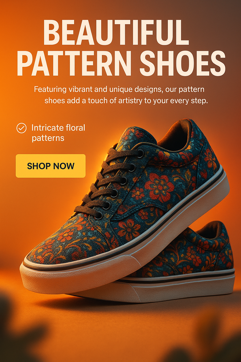 /Collection: /by davooda/Type: PNG/A product image showcasing stylish shoes with vibrant floral patterns. Ideal for fashion promotions, social media ads, or e-commerce platforms targeting trendy footwear enthusiasts.