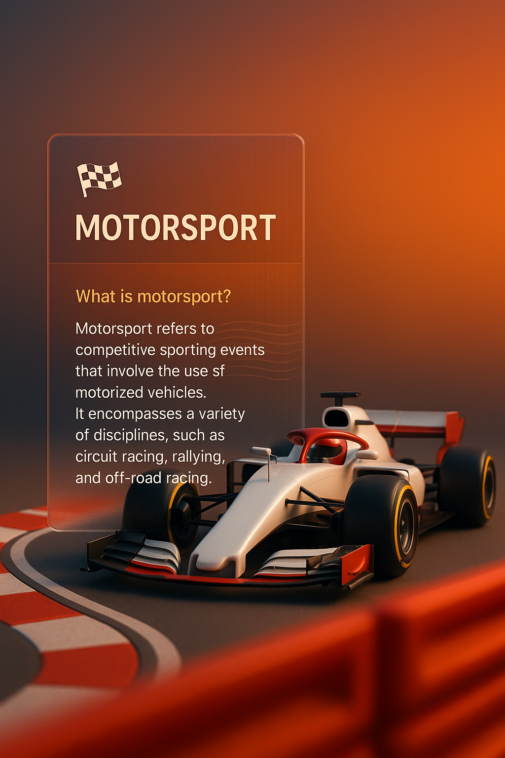 /Collection: /by davooda/Type: PNG/A striking 3D illustration of a race car, integrated with a transparent graphic block. The design features a gradient background and informative text about motorsport.