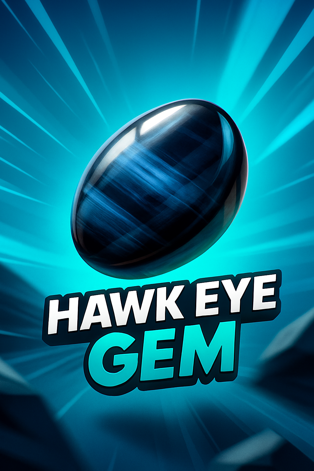 An eye-catching 3D illustration of a hawk eye gem, set against a dynamic backdrop with rays emanating from the center. The title is bold and colorful, enhancing the visual appeal.