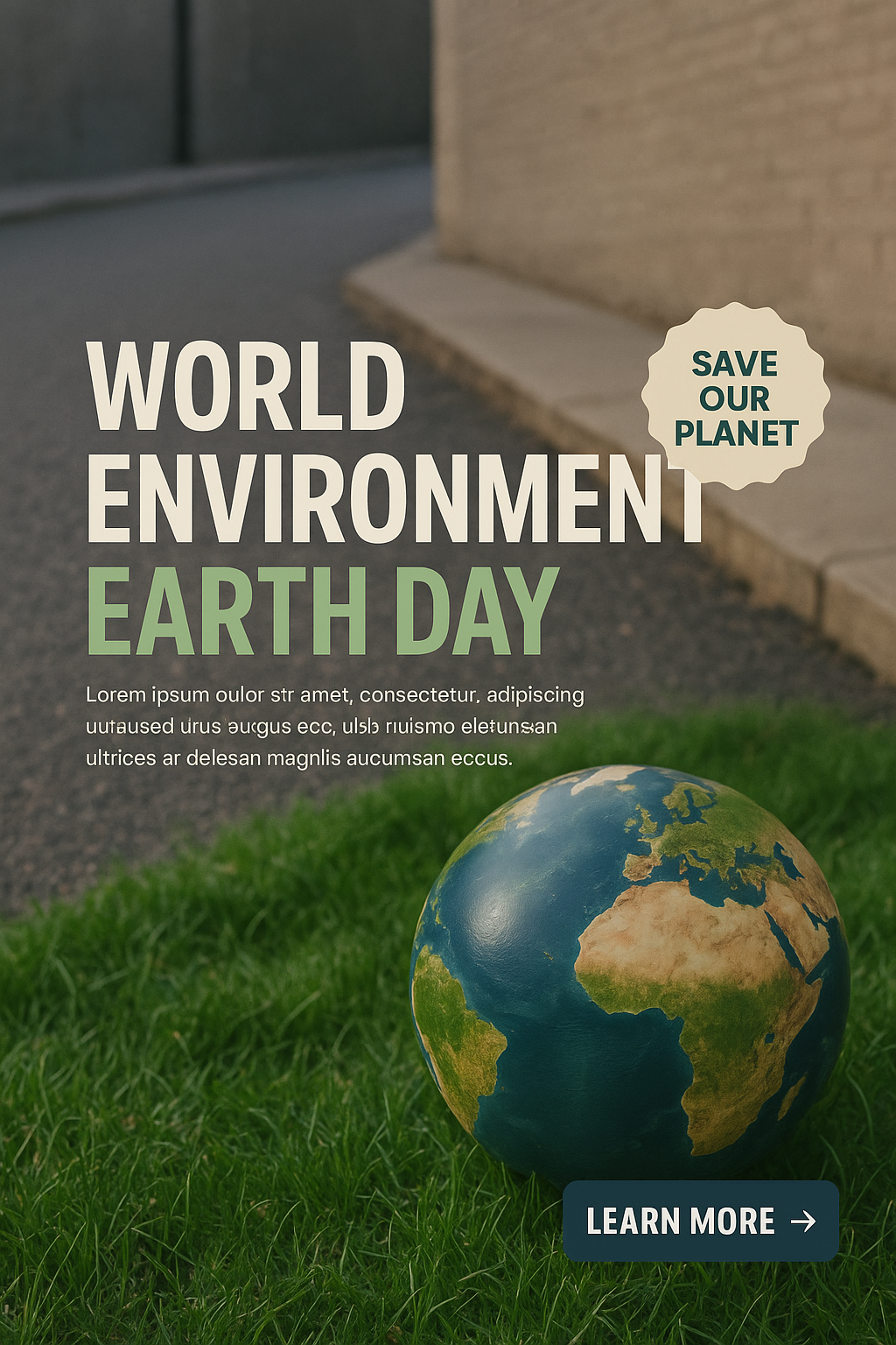 /Collection: /by davooda/Type: PNG/A visually striking image representing Earth Day, featuring a globe on grass. The design includes bold text elements promoting environmental awareness, complemented by a clear call to action.