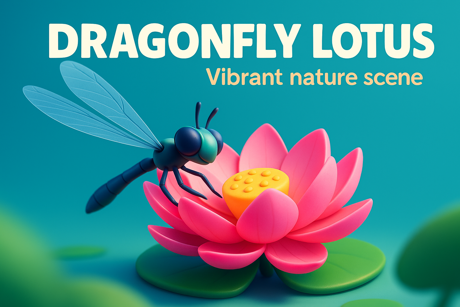 Dynamic Dragonfly and Lotus in a Vibrant Nature Scene