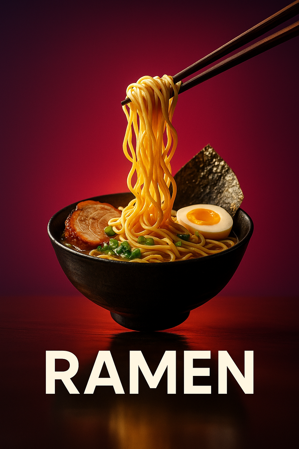 Dynamic Ramen Scene with Realistic Style and Bold Colors