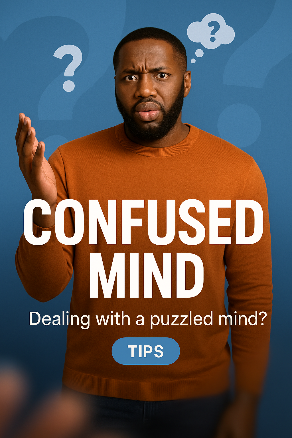 /Collection: , /by davooda/Type: PNG/Engaging social media post illustrating a man expressing confusion, designed to promote mental health awareness with a calm color palette and clear messaging.
