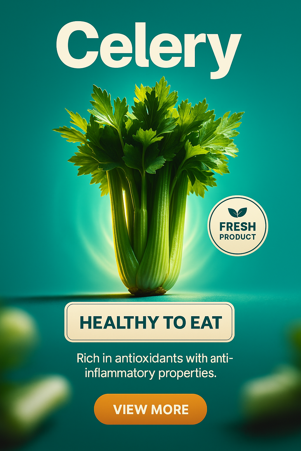 Dynamic Realistic Celery Scene with Engaging Text Elements