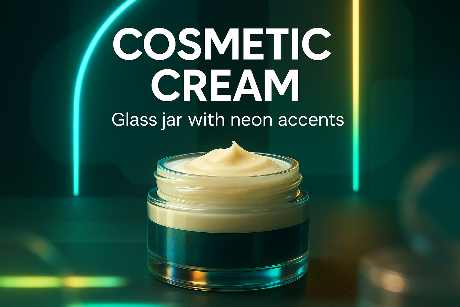 Skincare Product Promotional Graphic Featuring Cream Jar