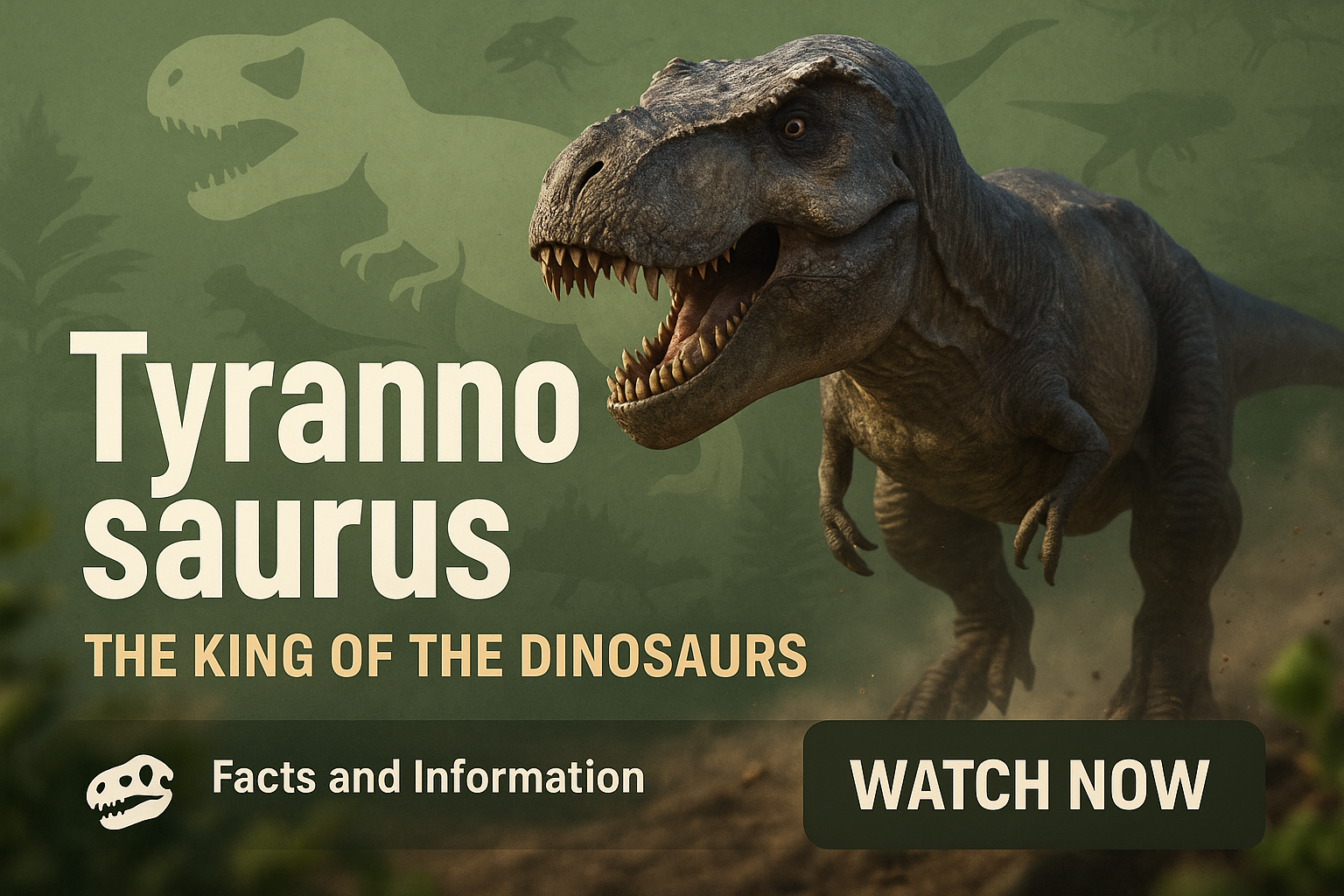 /Collection: /by davooda/Type: PNG/An engaging promotional graphic showcasing the Tyrannosaurus Rex, designed for educational content about dinosaurs. The image features a realistic dinosaur illustration with a call to action.