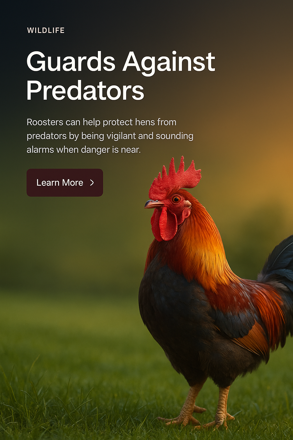 /Collection: /by davooda/Type: PNG/A stylish web page design showcasing a rooster with a gradient background. The layout includes a small label, a brief headline, and a text block with a call-to-action button.