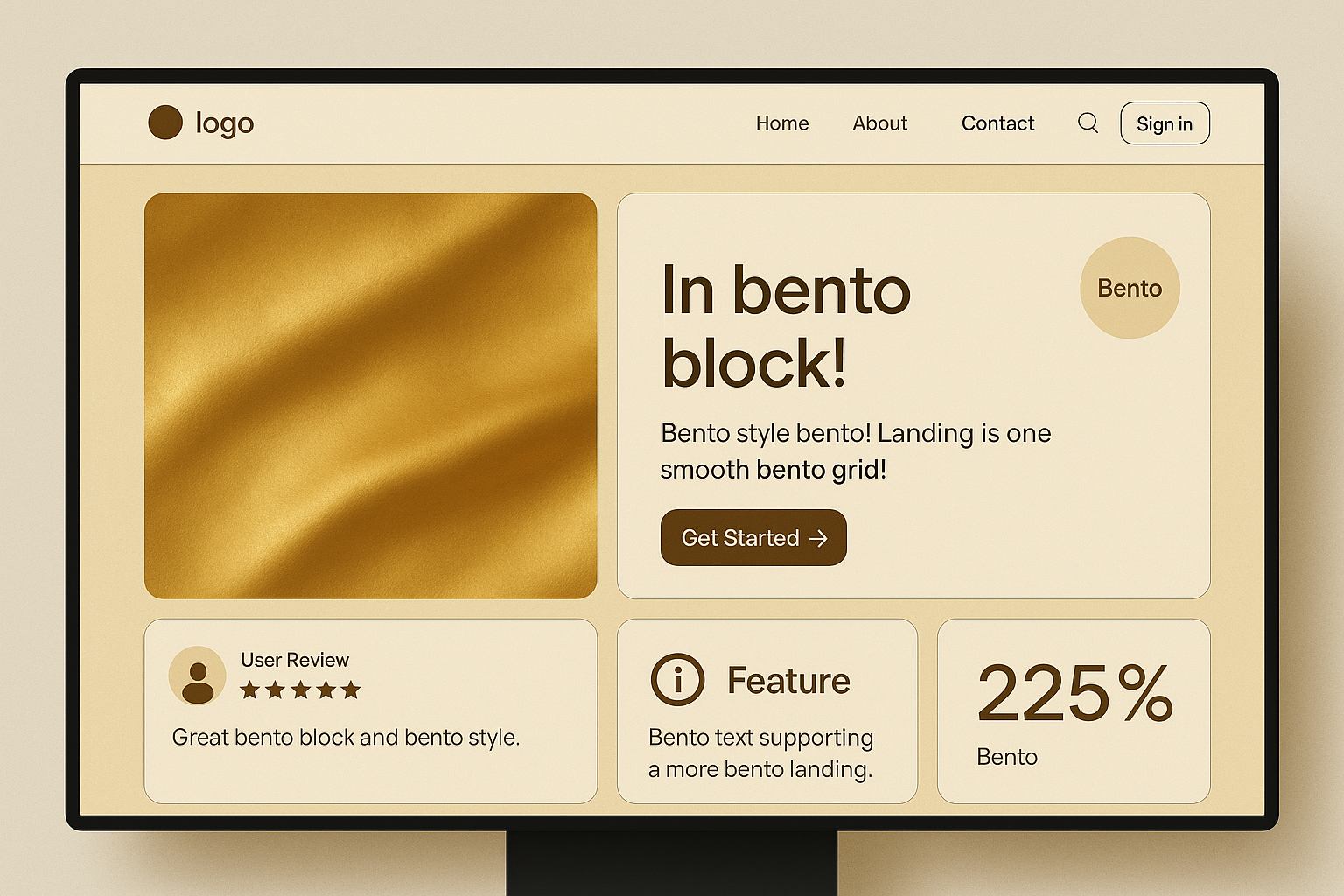 Bento Style Landing Page Design with Gold Background