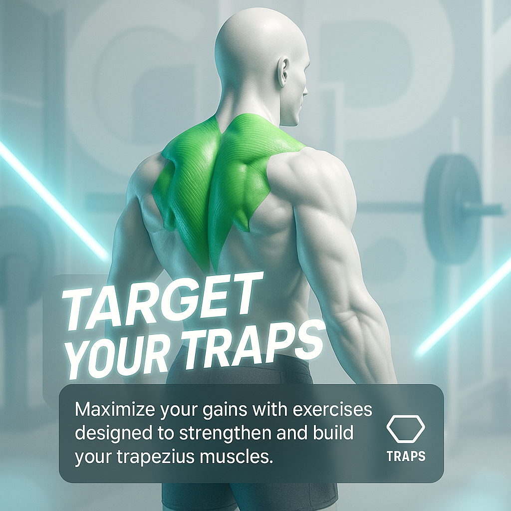 /Collection: /by davooda/Type: PNG/Informative fitness graphic showcasing the trapezius muscle, designed to motivate and educate individuals on targeted exercises for muscle development. Ideal for fitness enthusiasts and trainers.