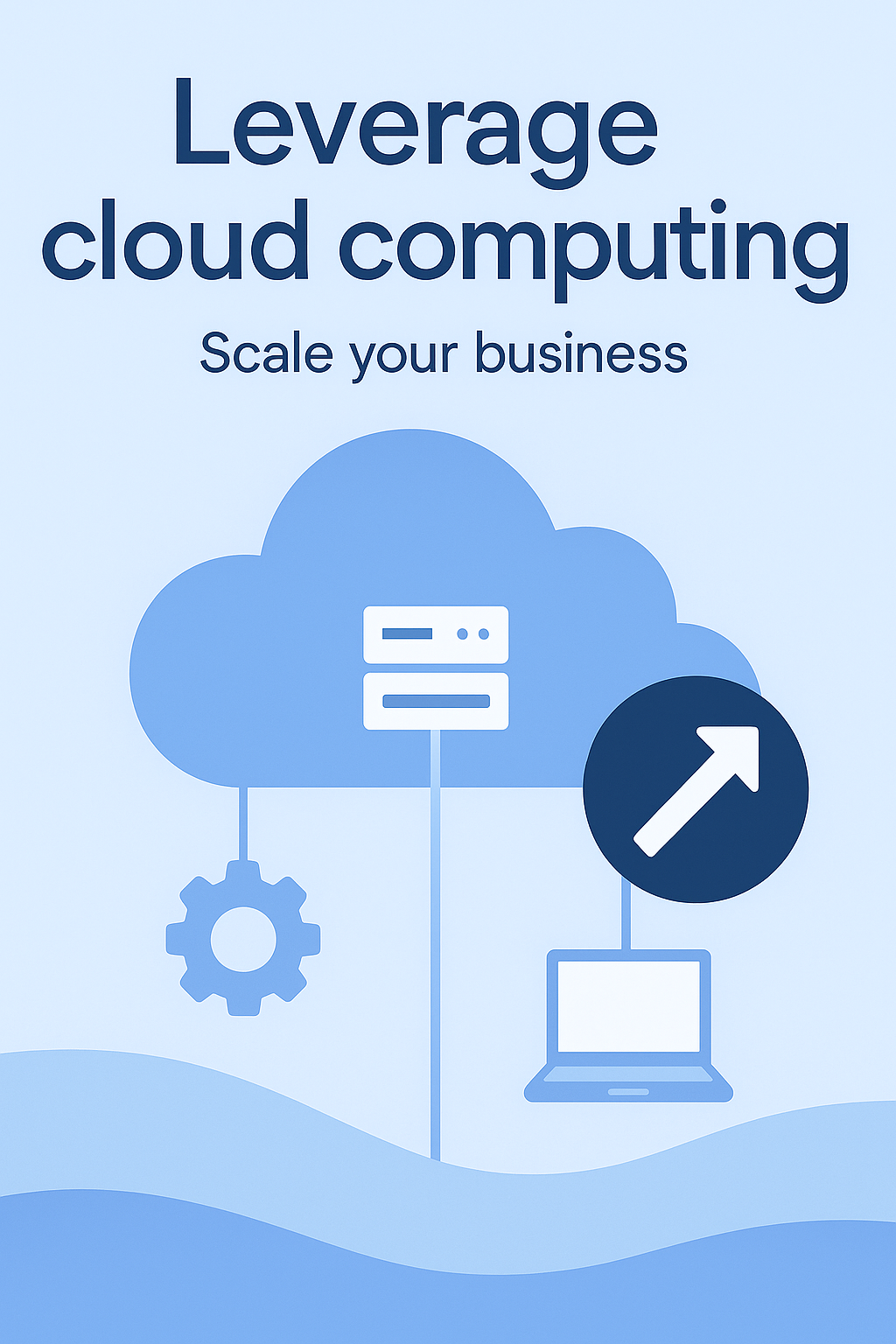 Modern promotional graphic illustrating cloud computing concepts with icons representing scalability and business growth, suitable for tech marketing.