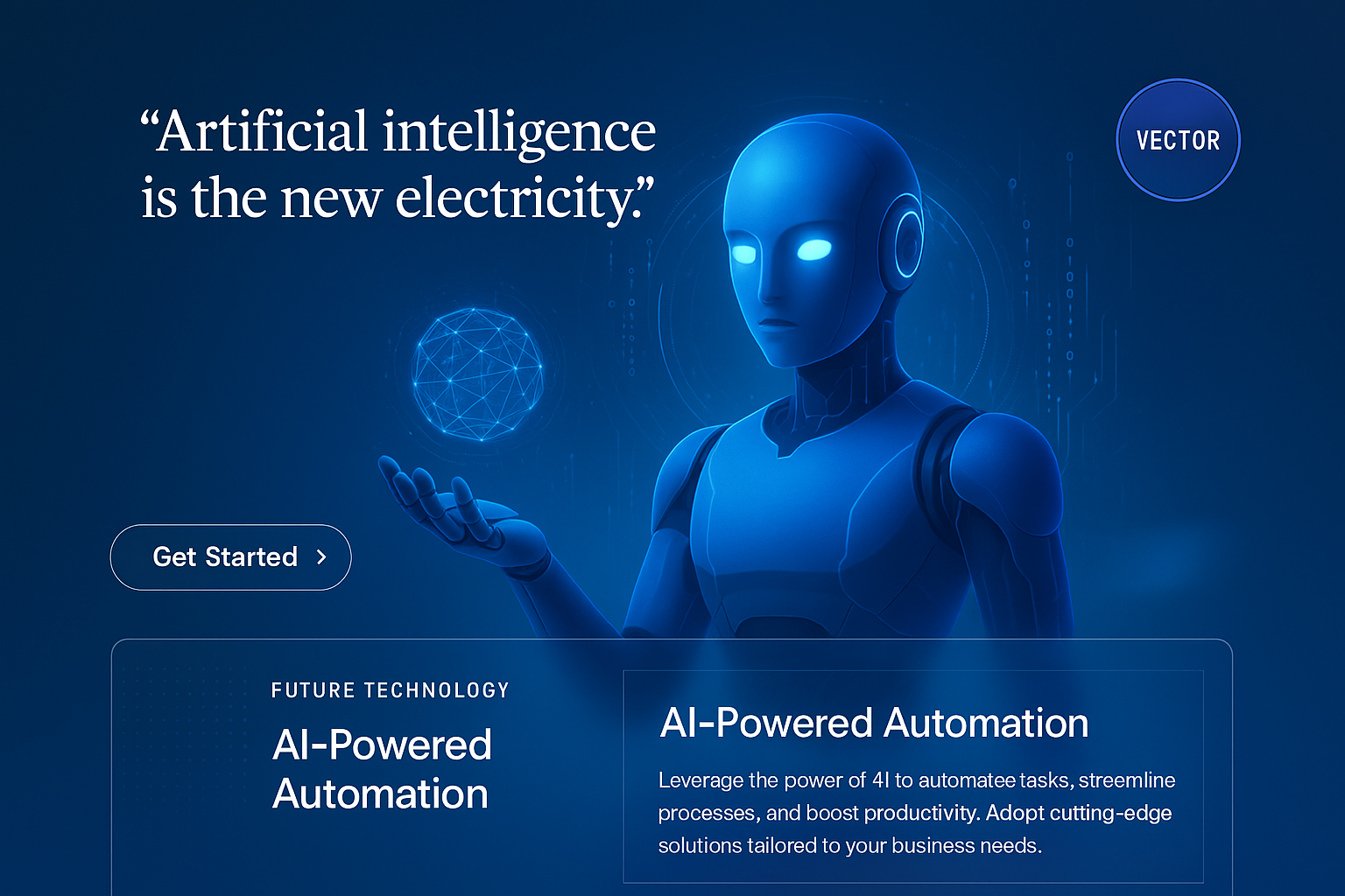 Dynamic AI Landing Page Design Concept with Realistic Elements