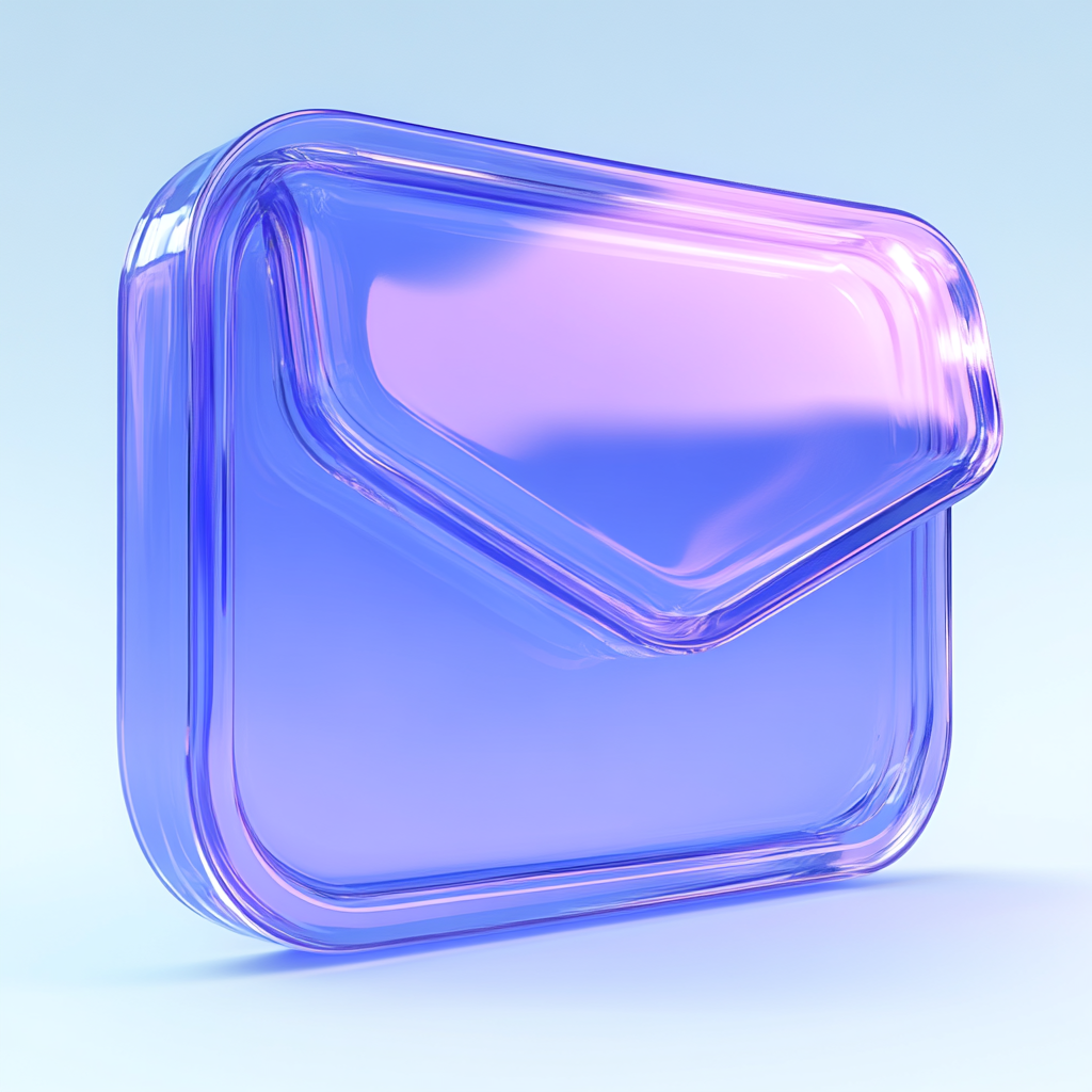 A modern 3D representation of an email icon featuring a vibrant gradient of purple and blue colors. This design is suitable for digital communication themes and tech-related projects.
