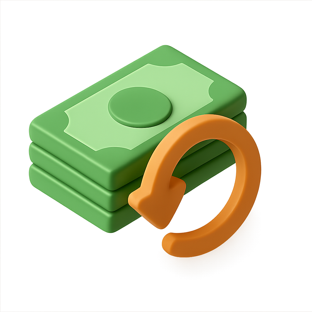 3D Money Return Icon with Stack of Bills