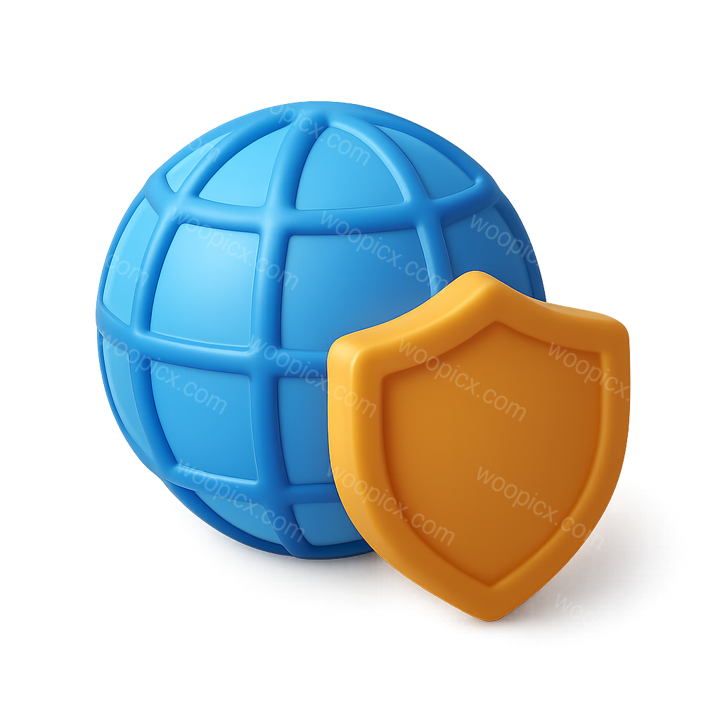 /Premium/Collection: /by davooda/Type: PNG/A three-dimensional blue globe with a grid design, accompanied by a prominent orange shield. The icon showcases a modern, isometric style with a transparent background.