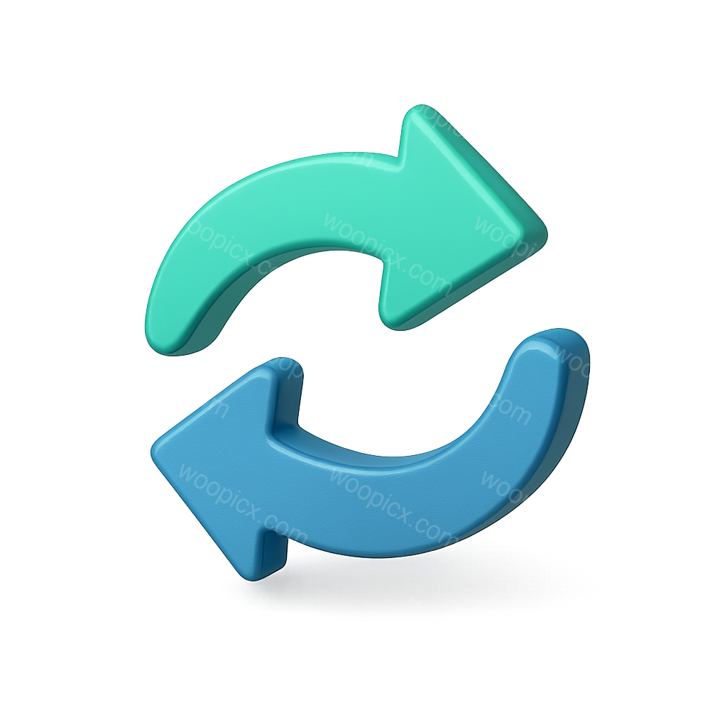 A visually appealing 3D icon featuring two arrows in a dynamic exchange motion. The arrows are designed in a three-quarter view with a glossy finish, set against a soft gradient background.