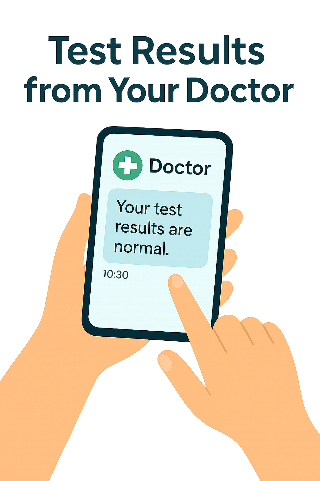 /Collection: /by davooda/Type: PNG/Illustrative graphic depicting a smartphone displaying a doctor's message about test results. This design is suitable for health apps or educational materials.