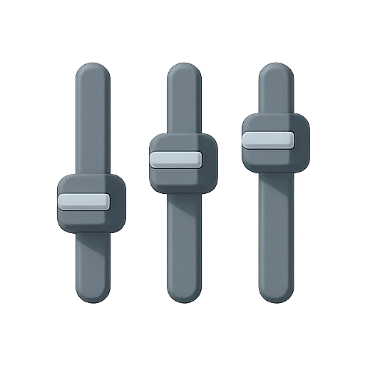 A minimalist graphic featuring a set of three gray slider control icons, designed for applications related to audio, video, or settings adjustments. Suitable for UI/UX design.