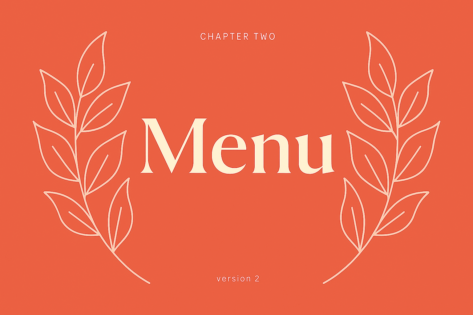 A visually appealing menu layout featuring a vibrant red background, elegant typography for the word 'Menu', and delicate leaf illustrations on the sides.