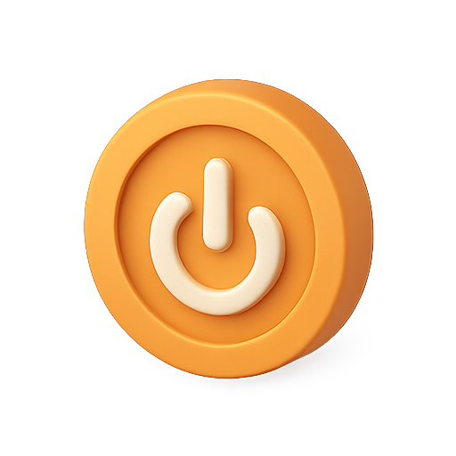 Stylized 3D power button icon featuring an orange circular base with a contrasting white symbol, ideal for tech-related graphics and applications.