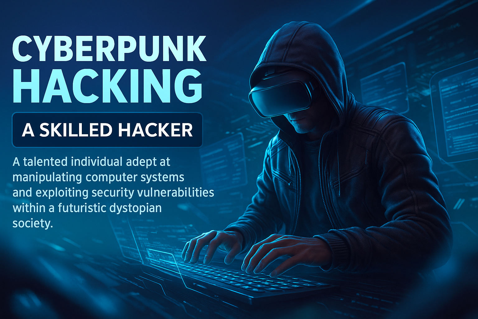 Futuristic Cyberpunk Hacker Engaged in Hacking Activities