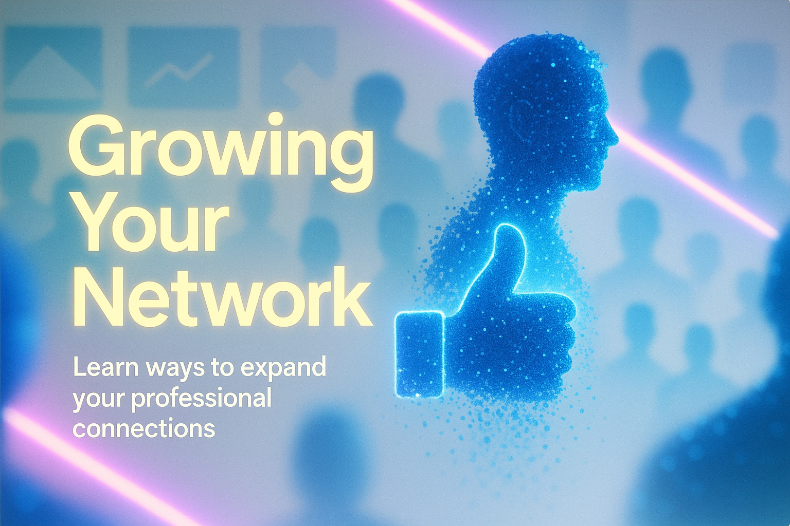 /Collection: /by davooda/Type: PNG/An engaging digital graphic focused on professional networking, featuring a glowing thumbs-up icon and silhouettes in the background, ideal for social media or presentations.