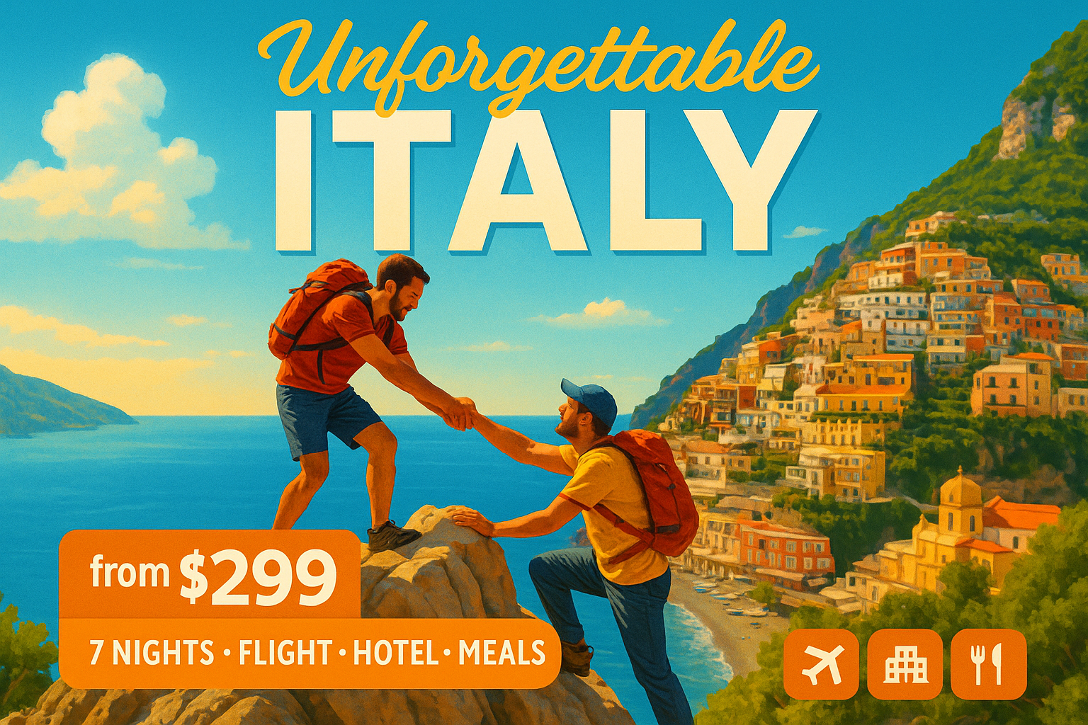 Vintage Travel Poster Celebrating Seniors on Holiday in Italy
