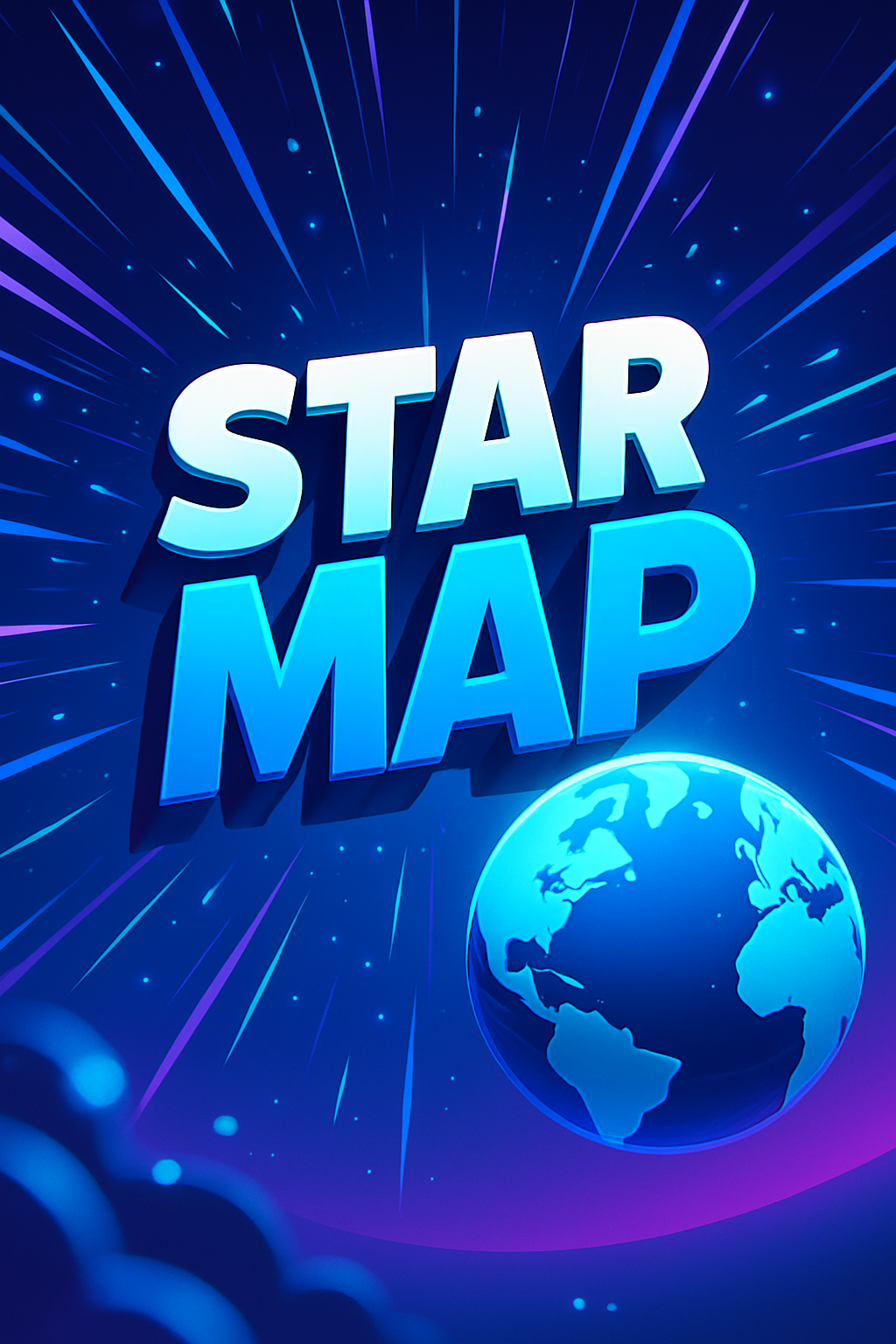 /Collection: /by davooda/Type: PNG/A visually striking star map featuring bold 3D typography and a globe. The dynamic rays emanate from the center, creating an energetic atmosphere with a smooth gradient background.