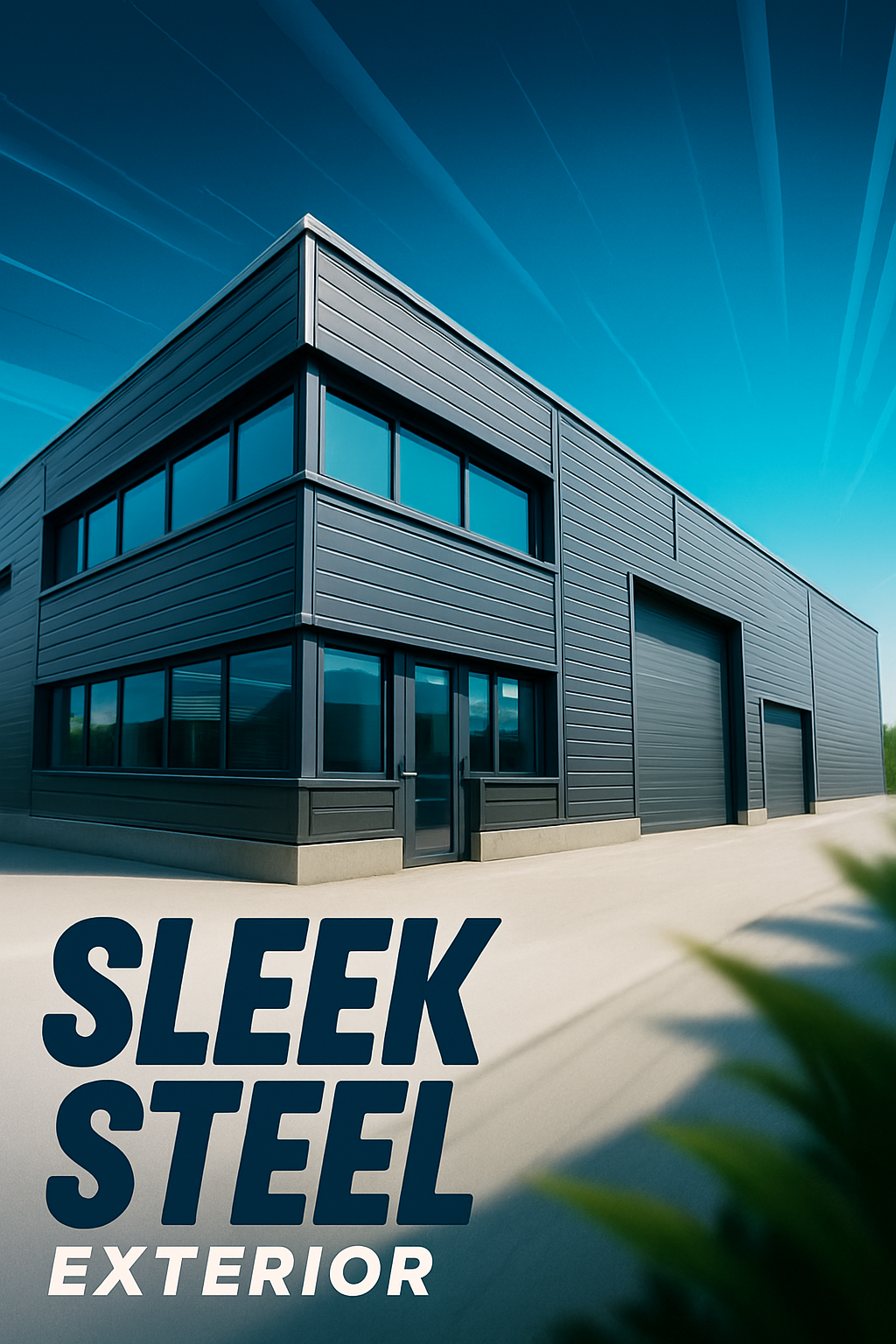 Sleek Steel Exterior of Modern Warehouse Office Building