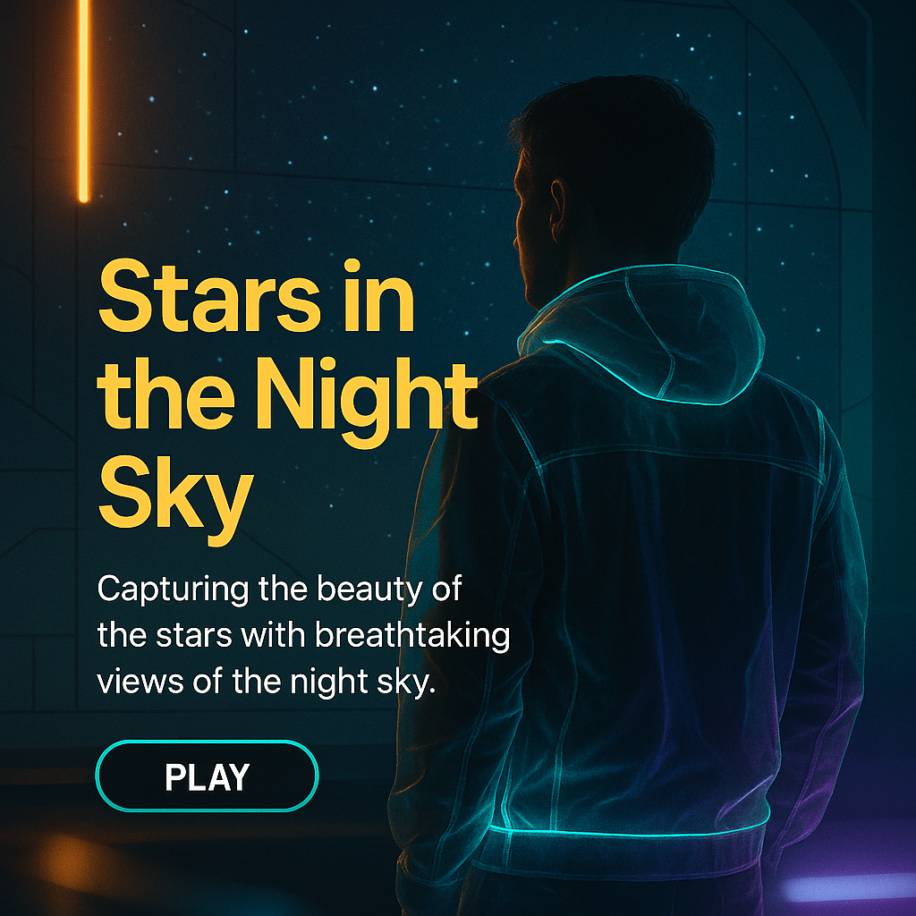 Engaging graphic depicting a figure in a futuristic environment, emphasizing the beauty of the night sky. Ideal for promotional content related to astronomy or stargazing.
