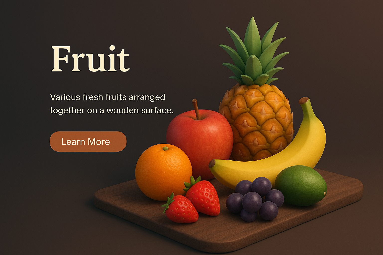 Realistic 3D Scene of Fresh Fruits on a Wooden Surface