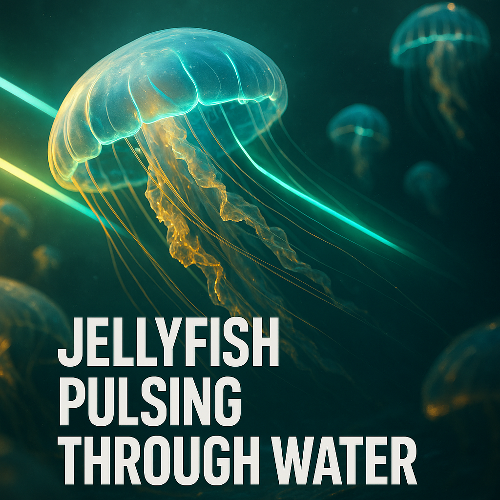 Dynamic Jellyfish Pulsing Through Water in Neon Glow