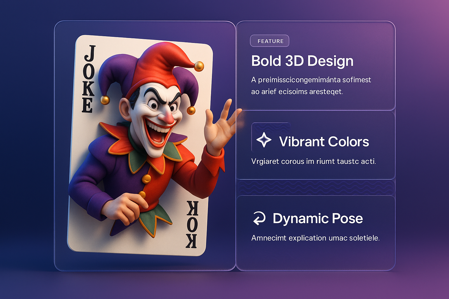 Vibrant 3D Joker Card Illustration with Feature Blocks
