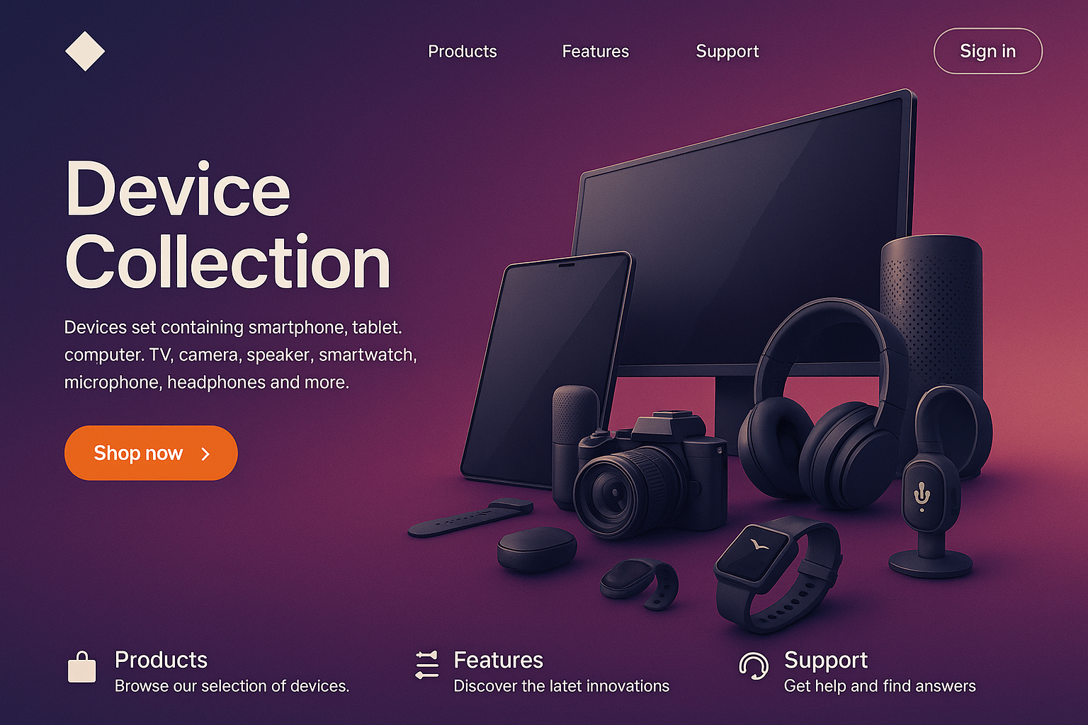 Futuristic Landing Page Design with Device Collection