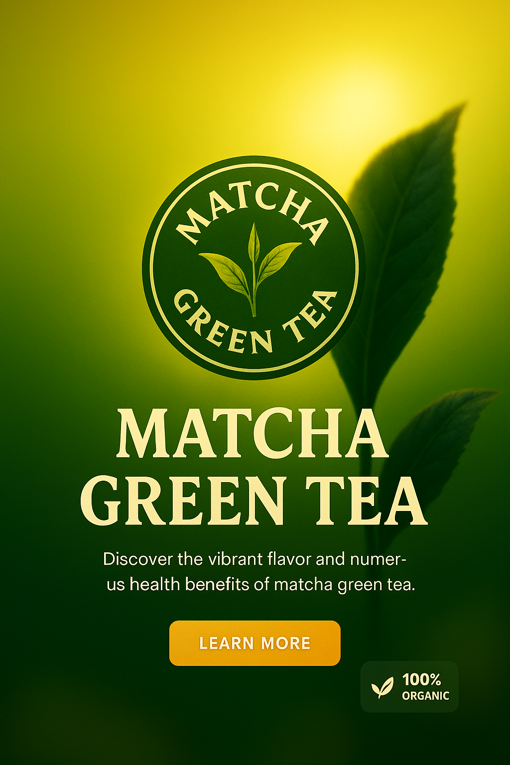 Promotional Graphic for Matcha Tea with Elegant Presentation