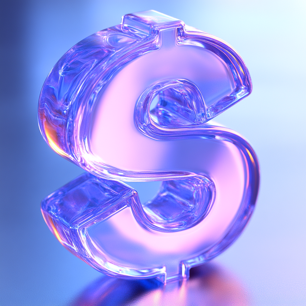Stylized 3D Glass Letter 'S' in Iridescent Colors
