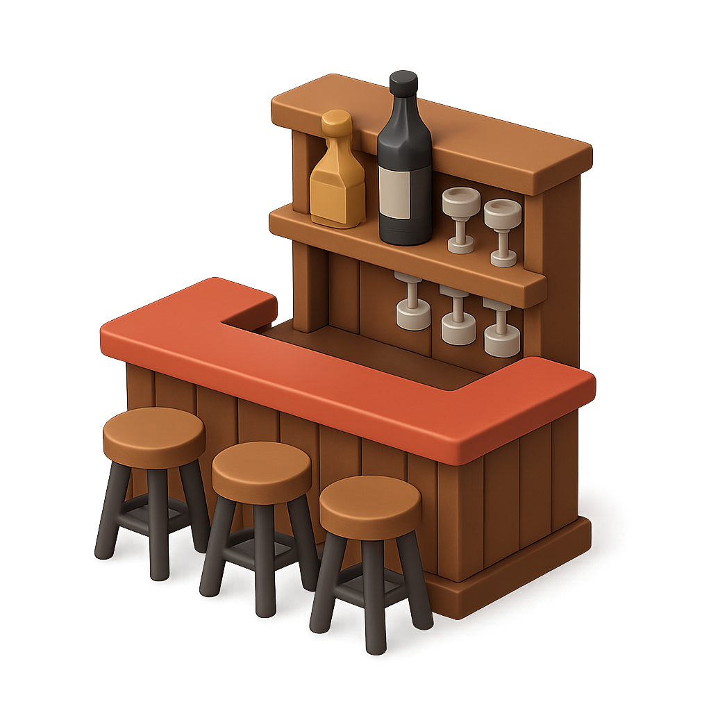 Stylish 3D Bar Counter Icon with Bottles and Stools