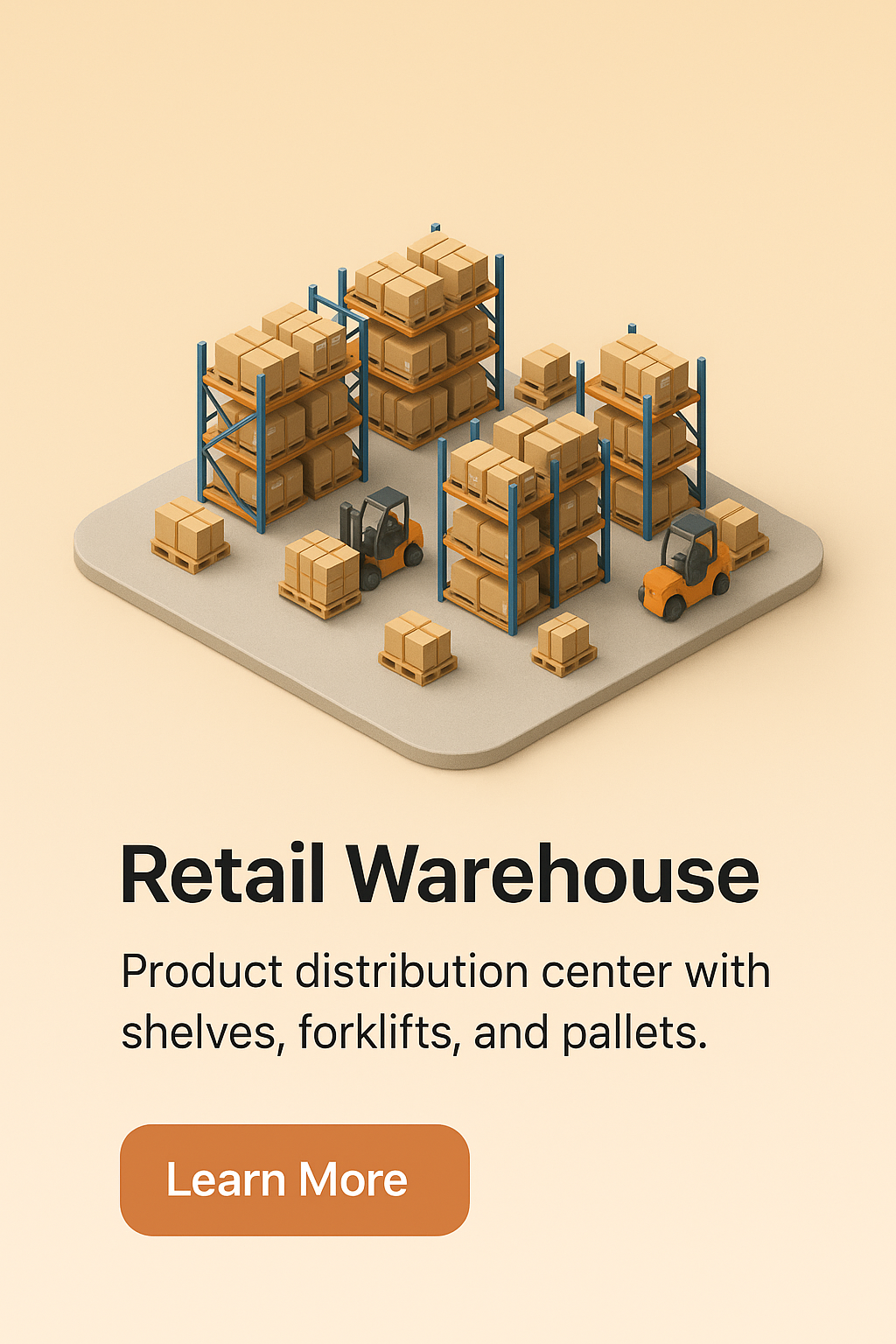 Detailed 3D Scene of a Retail Warehouse with Forklifts