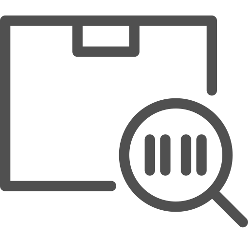 outline simple icon: barcode, delivery, logistics, magnifying glass, package
