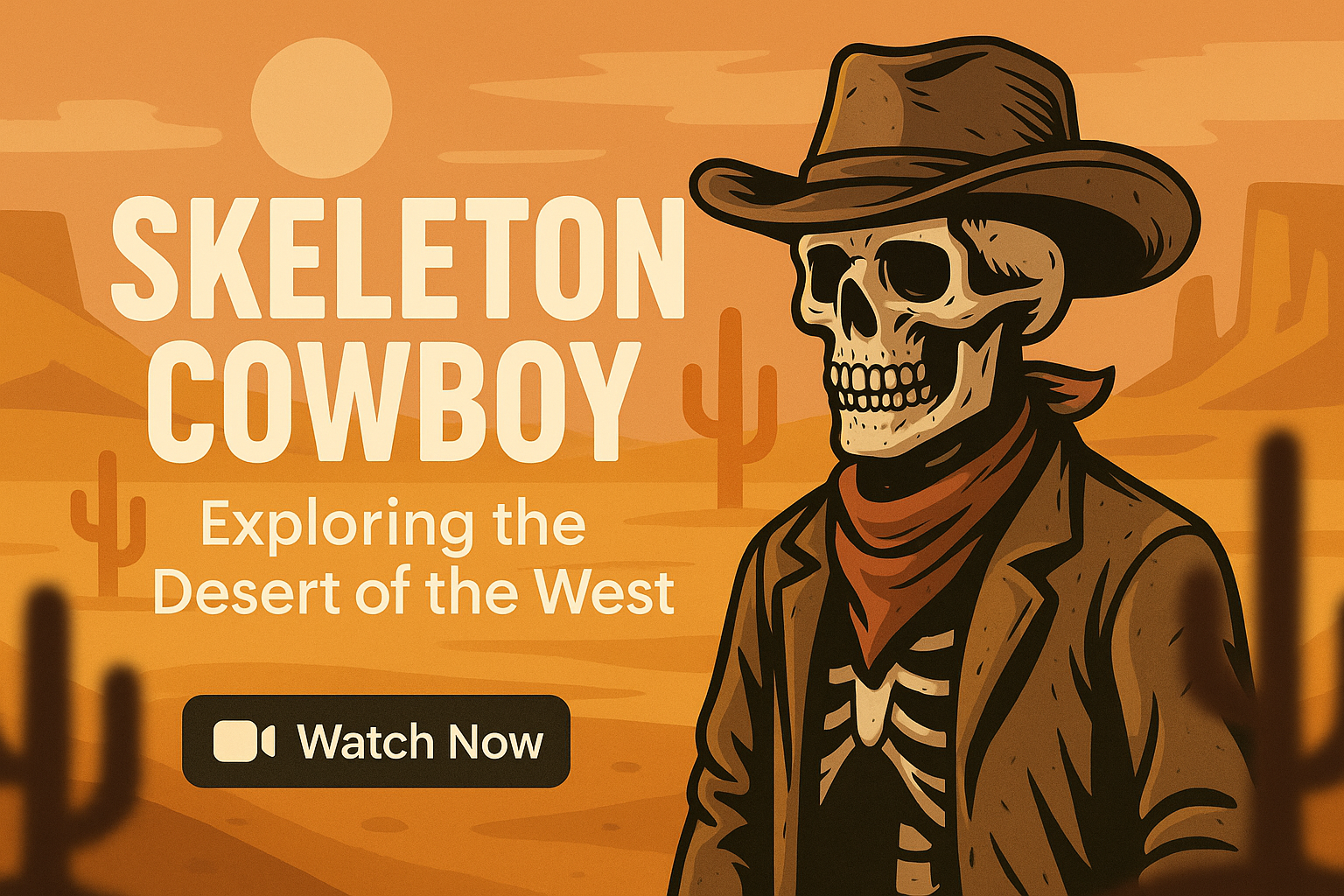 Illustrative Banner Featuring a Skeleton Cowboy in Desert Landscape
