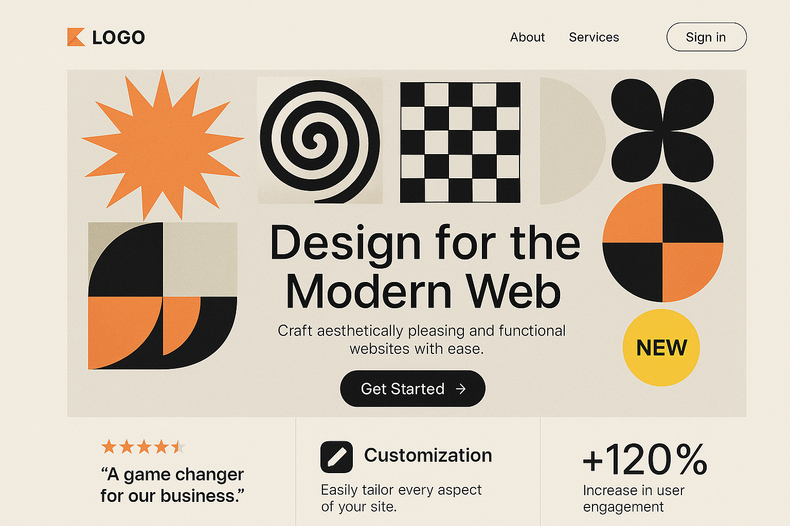 Modern Web Design Landing Page with Geometric Shapes