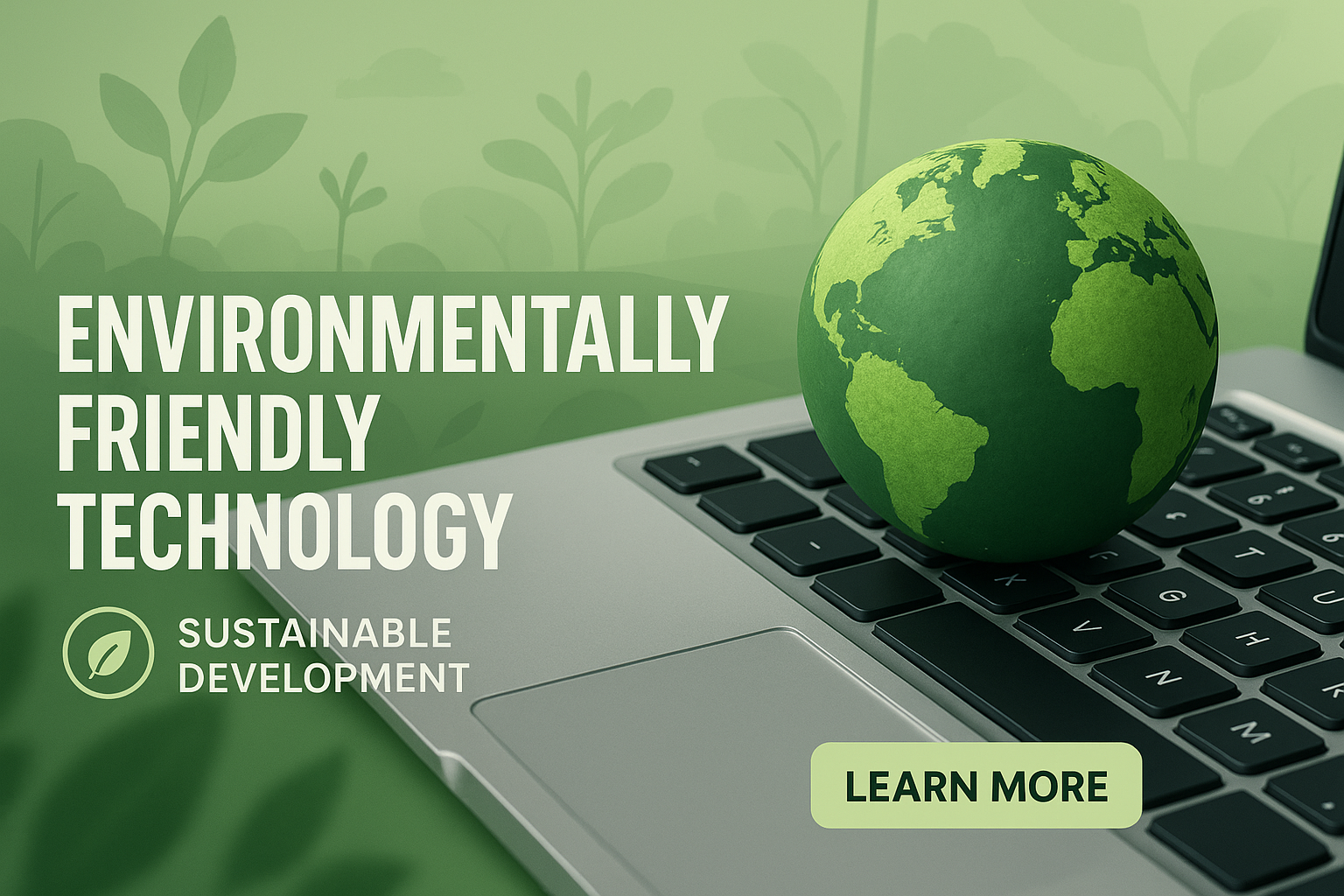 /Collection: /by davooda/Type: PNG/A visually appealing promotional graphic featuring a green globe and laptop, emphasizing sustainable technology. Ideal for eco-friendly marketing campaigns.