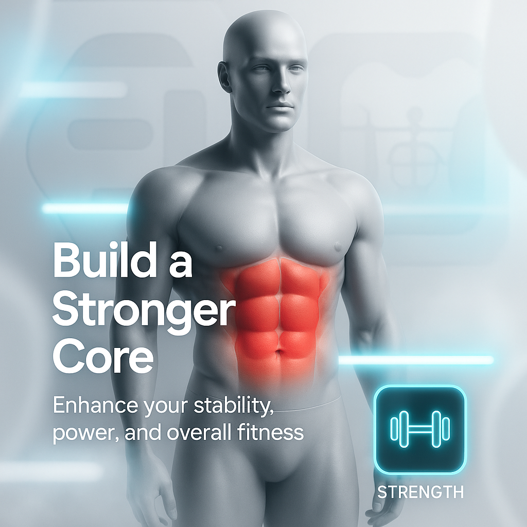 /Collection: /by davooda/Type: PNG/Modern digital illustration emphasizing core strength and fitness. Ideal for health and wellness campaigns or fitness programs targeting stability and power.
