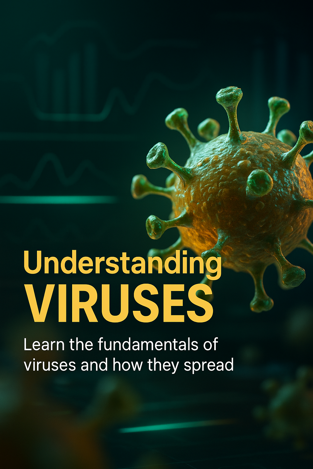/Collection: /by davooda/Type: PNG/3D illustration of a virus, accompanied by educational text. This graphic serves as a visual aid for understanding viruses, aimed at students or the general public interested in biology.