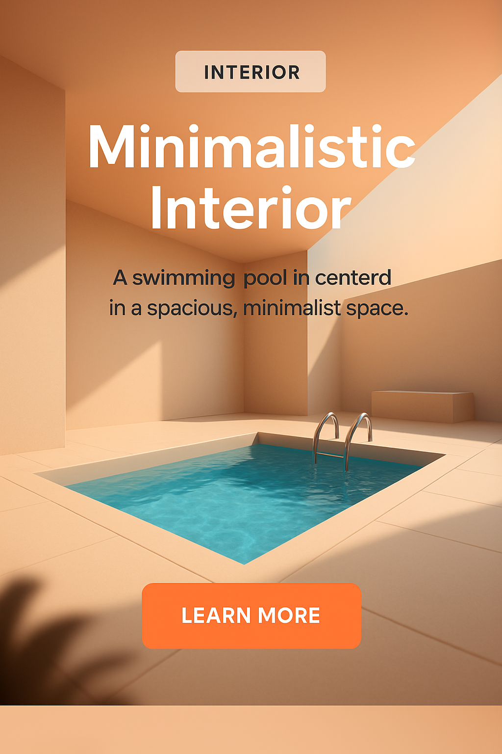 /Collection: /by davooda/Type: PNG/This graphic showcases a modern minimalistic interior design with a swimming pool. It features soft colors and clean lines, ideal for promoting interior design concepts.