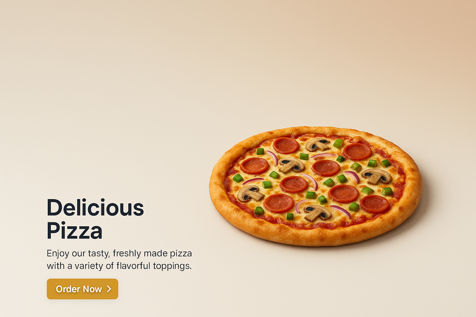 /Collection: /by davooda/Type: PNG/A visually appealing 3D illustration of a delicious pizza topped with pepperoni, mushrooms, and vegetables, set against a smooth gradient background with a call-to-action button.