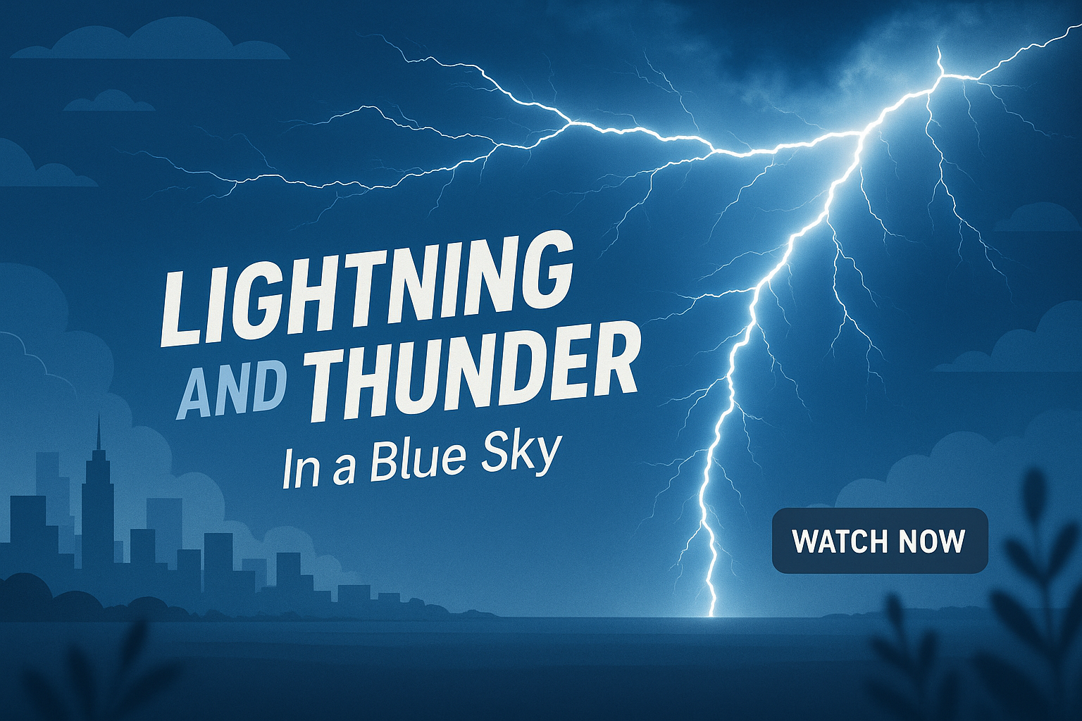 /Collection: /by davooda/Type: PNG/Dynamic graphic showcasing lightning and thunder in a blue sky, ideal for weather-related content. The design combines dramatic visuals with a modern aesthetic, suitable for digital platforms.