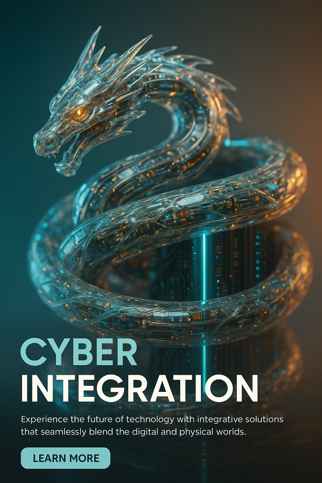 /Collection: /by davooda/Type: PNG/A hyperrealistic cyber dragon, sculpted from glass-like polymers, coils around a server core. The intricate design features glowing micro-LEDs and metallic components, illuminated by neon accents.